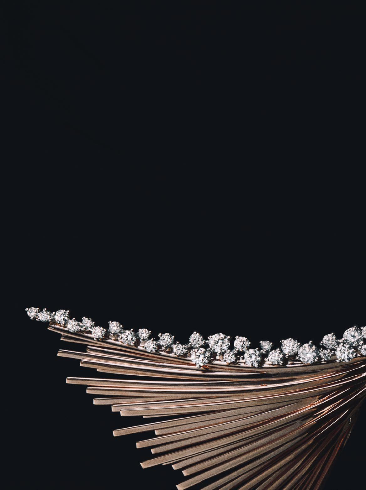 combining the deep black of onyx with rose gold, proving an unprecedented proposal. The designer underlines her desire to illustrate the subtle duality that cohabits within. She states: “While onyx is an intense stone, a symbol of strength and self-confidence, rose gold is soft, seductive, and romantic. I designed these new jewels, thinking of today’s women, who are no longer afraid to assert themselves on a daily basis, while at the same time maintaining their femininity”. During our interview, we had the chance to further get to know her universe and the way she started and plans ahead on her next steps and challenges. “I place my passion at the center of all my creations. Instinctively, each diamond inspires me to wear it or to draw it, the emotion comes from the setting that I imagine when I see the stone. The shapes, patterns and techniques prevail, they are chosen only to highlight the uniqueness of the diamond, its quality, its cut, its purity and its nuances. I like all diamond cuts, I wouldn’t say I prefer one over another. I follow my instincts and I