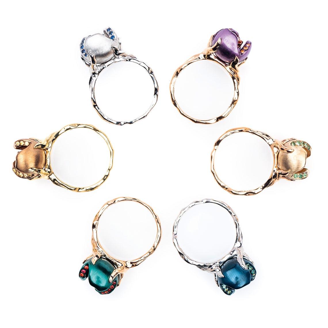 Ring in anodized titanium with diamonds and green sapphires. Titanium collection. GIOVANNI FERRARIS.