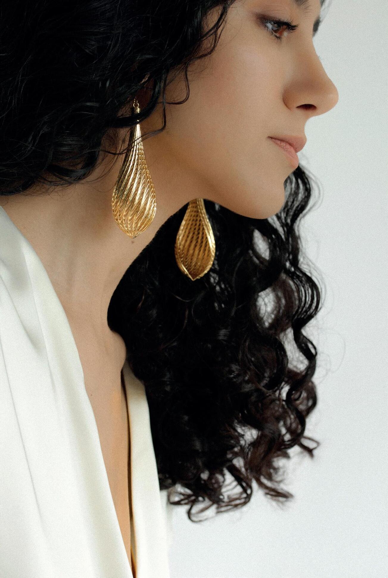 The Silhouette earrings were designed for the Flying Solo runway show during last New York Fashion Week. The designer wanted a piece that would stand out on the catwalk as the model walked. It’s a piece that resembles a woman’s silhouette moving with grace and attitude.