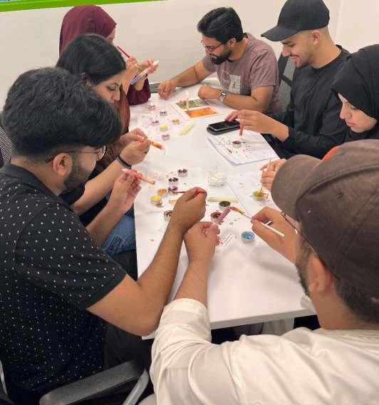 "Oh, there are so many! One of my initial favorite memories is the welcome breakfast when I first joined I remember meeting so many people and feeling this sense of belonging and support right away Every place has its good days and bad days At Curtin Dubai, the good days were phenomenal The clubs especially, I was part of the Culinary Club and the Artistry Club The amount of fun we had! We'd make new recipes, fists full of batter while teasing and annoying each other, making such a mess It was amazing! In the Artistry Club, we'd throw paint and rub our hands at each other while making candles we couldn't stop laughing for even a minute. There's also a rec room on campus with a billiards table where we spent hours playing and hanging out. I felt so connected with my peers in my friend group that even with the three-hour long commute that I had, I'd do it all over again
