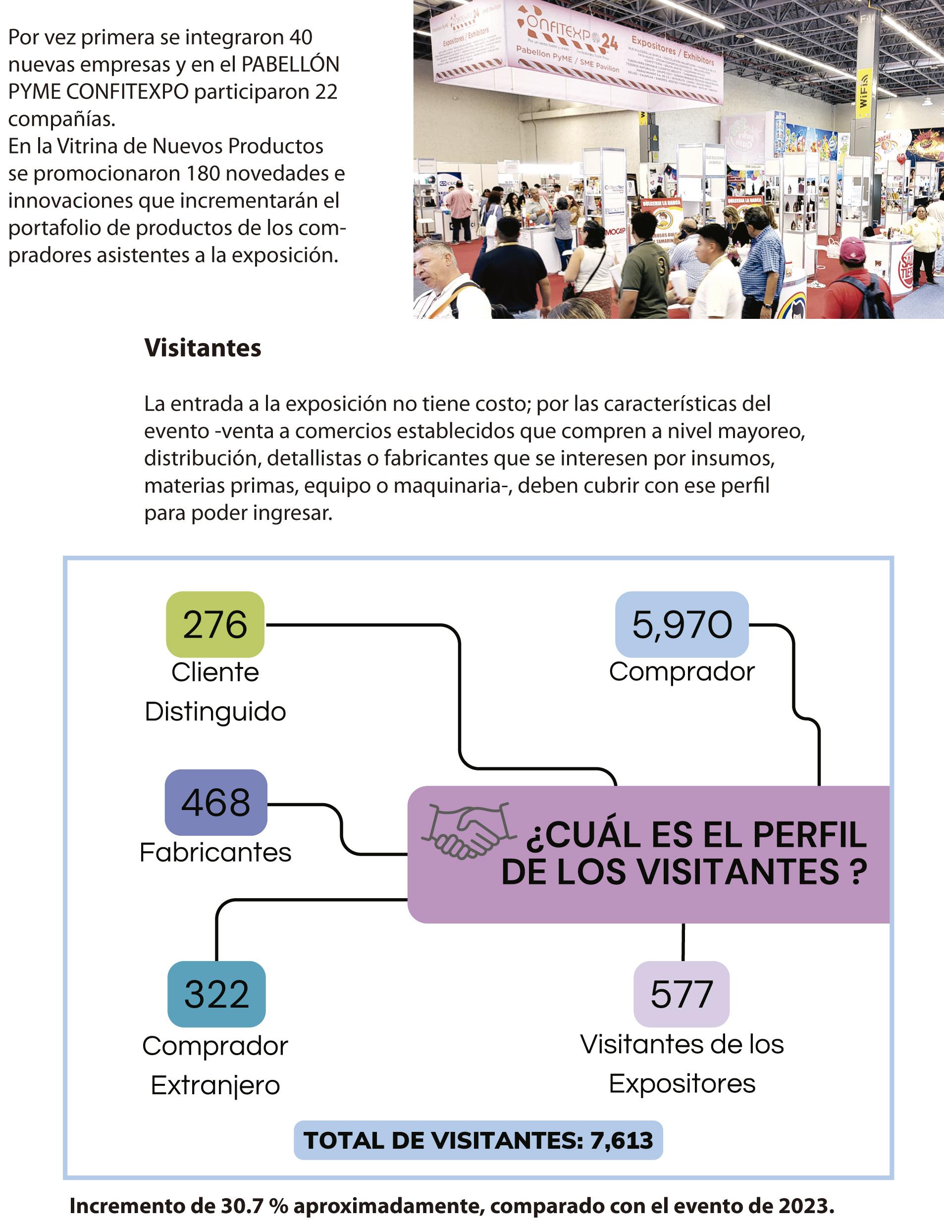 Ser parte de Confitexpo brinda a los profesionales de la confitería, bebidas, globos, maquinaria, galletas, chocolates, artículos de fiesta, desechables, empaque, entre otros, la oportunidad de dar a conocer directamente sus productos y servicios. A través de ellos, pueden presentar lo último en tendencias e innovaciones, así como avances que satisfacen las necesidades del consumidor, tanto de quienes asisten al evento como de aquellos que posteriormente compran a través de mayoristas o distribuidores.
