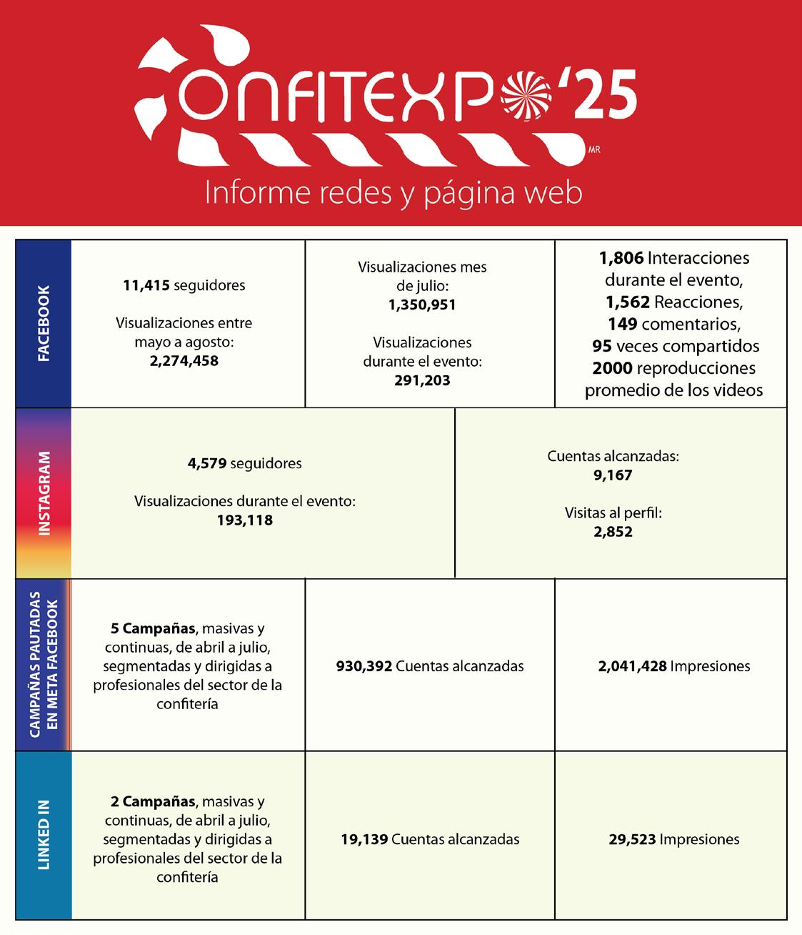 Confitexpo se ha consolidado como un punto de encuentro clave y estratégico para el sector confitero, no solo por su relevancia presencial, sino también por su creciente impacto en el entorno digital. El alcance en redes sociales ha sido significativo gracias a la transmisión en streaming de entrevistas con expositores, lo que ha permitido ampliar la visibilidad del evento y hacerlo accesible en línea para audiencias más amplias.