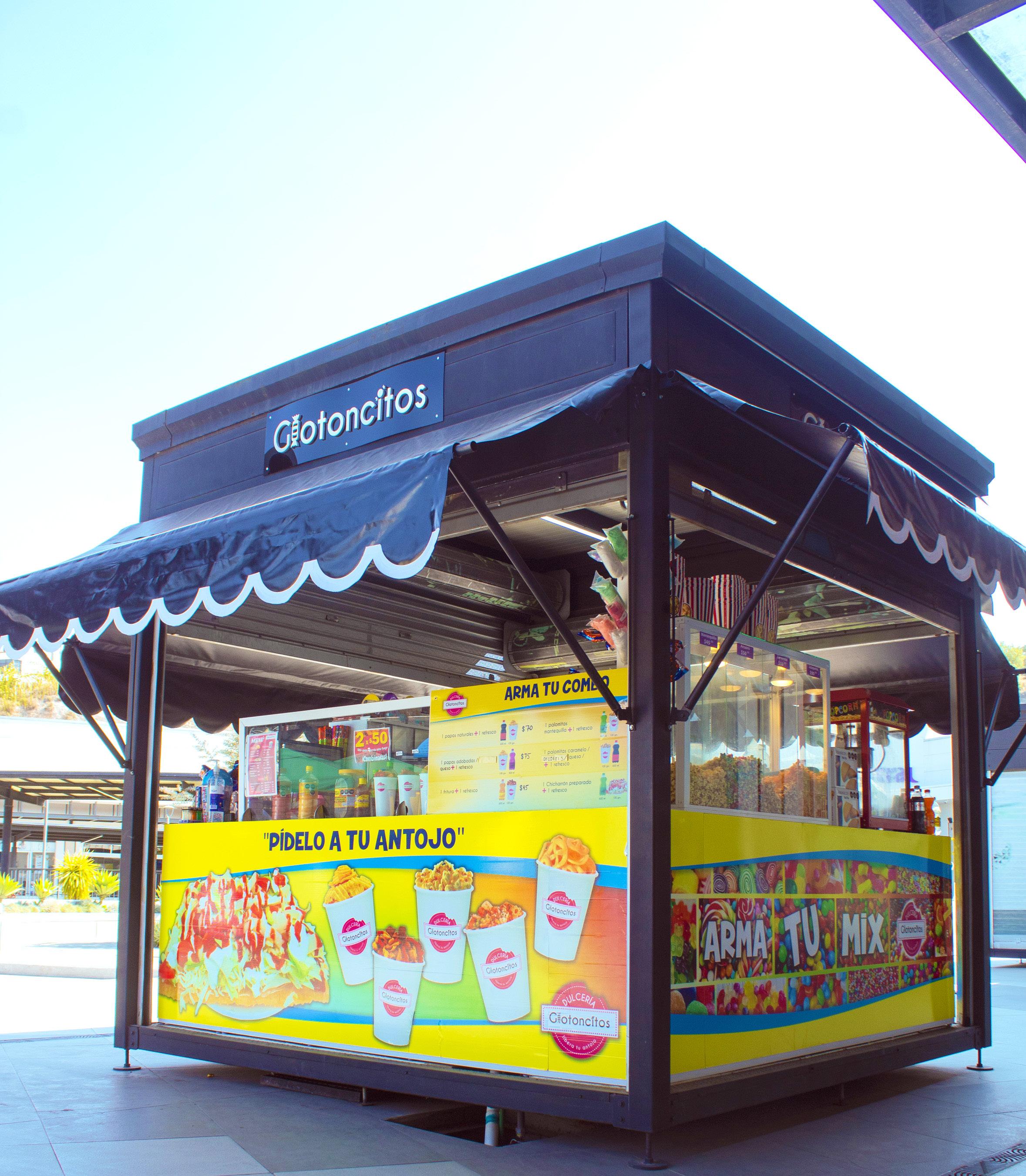 Como bien lo señala Carlos, Dulcería Glotoncitos es una isla de 3X3, en donde las cuatro caras ofrecen en conjunto una amplia variedad de productos. "De primera vista tenemos toda la parte de los preparados, es decir, la gente que entra a la plaza lo primero que ve es que tenemos alimentos preparados -chicharrón, papas, palomitas, fruta, gomitas-, y algunos complementos de bebidas que también pueden ser preparadas con chilitos".