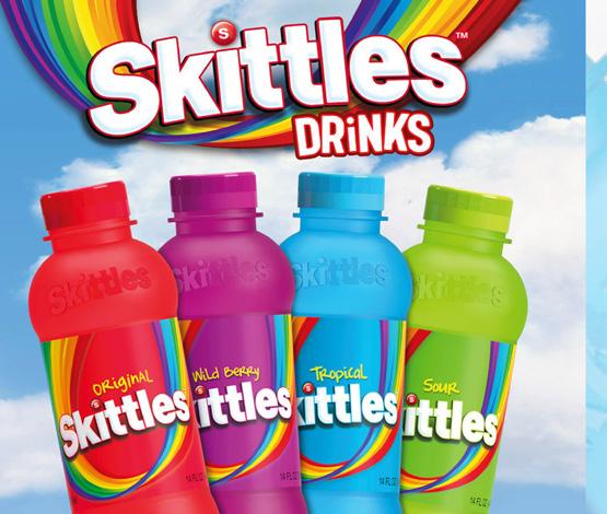 Esta nueva y sabrosa innovación estará disponible en una botella de PET transparente 100 % reciclable en presentación de 14 onzas, en cuatro populares sabores de SKITTLES: