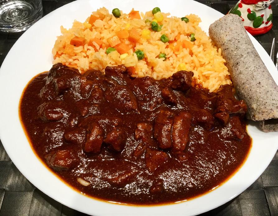 - Mole Aguascalientes.- este es un mole dulzón que se elabora con chiles mulatos, anchos, guajillos y puyas; chocolate, manzana, plátano fresco, especias, cáscara de naranja agria y carne de puerco.