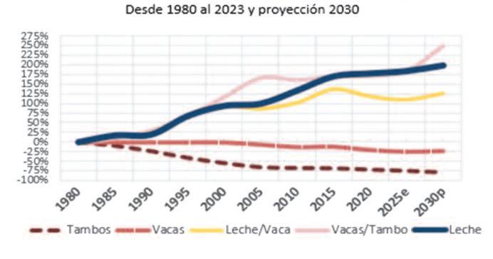 Desde 1980 al 2023 y proyección 2030