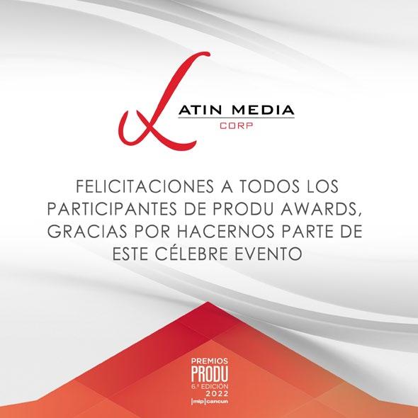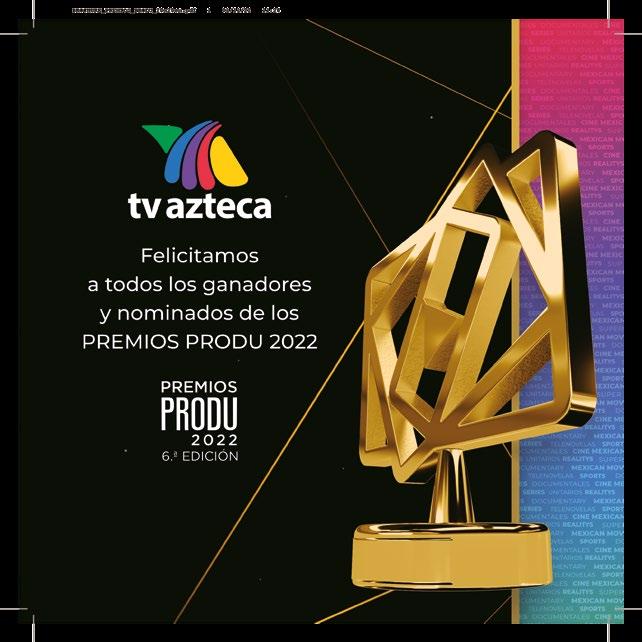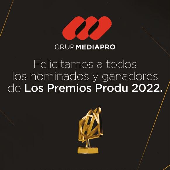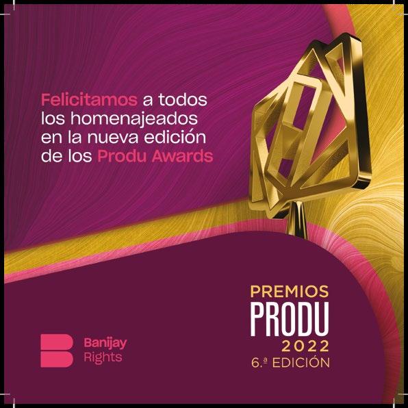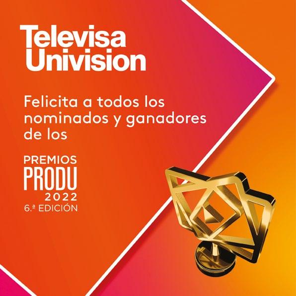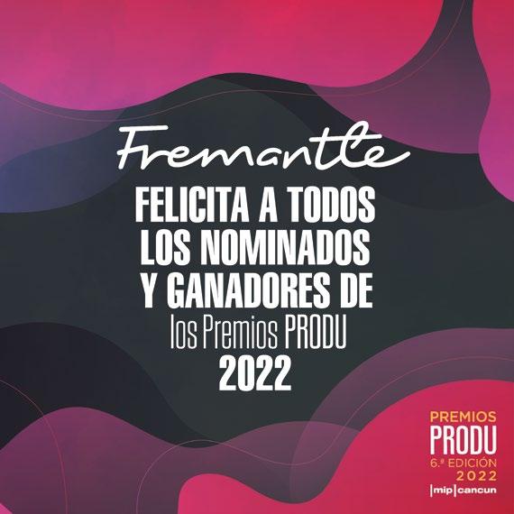 ORGANIZADORES PRODU Ríchard Izarra, fundador y presidente • Roko Izarra, socio y producción ejecutiva de los Premios PRODU • Sebastián Novacovsky, editor sénior asociado y productor general de los Premios PRODU • María Paula Capuya, gerente general operativa • Maye Albornoz, directora de Digital y de Premios PRODU • Meca Salado Pizarro, coordinadora general Premios PRODU • Andrea Jurado, ejecutiva de Premios • Federico Bianchi, ejecutivo de Premios • Melina Romeo, ejecutivo de Premios • Andrés Vázquez Rodríguez, ejecutivo de Premios • Amy Ibarra, directora sénior de Ventas • Javier Adrián, director de Ventas en México • Mara Fernandez, editora asociada y directora sénior para el mercado de EE UU y Latam • Sonia González, directora de Engagement • Victor Vega, director creativo • Damián López, diseñador • Carlos Torres, diseñador • Karla Ramos, diseñadora • Cynthia Plohn, coordinación de Prensa y Relaciones Públicas • Vanessa Maldonado, coordinación de Prensa y Relaciones Públicas • Liz Unamo, coordinación de Prensa y Relaciones Públicas • Alberto Márquez, corrector • Ida Febres, coordinadora de Video • Alfredo Piñero, Alioth Chacón y Jesús Ramírez, editores de video • Asdrúbal Chirinos y Miguel Tortello, Desarrollo y Tecnología RX FRANCE / MIP Cancun María Pérez-Bellière directora de MIP Cancun • Manuel De Sousa, director de Asociaciones y Desarrollo Comercial • Megane Lelasseur, Event Production Manager • Yi-Ping Gerard, directora de las Relaciones con los Compradores de Contenido • Amine Ouinini, Technical Manager • Myriam Laville, Conference Manager • Raquel Duenas, Conference Manager • Mathilde Van Wynendaele, Marketing & Content Manager • Cathy Nelson, gerente de Relaciones con Clientes • Robert Marking, VP sénior de Ventas y Desarrollo de Negocios de TV en EE UU • Louis