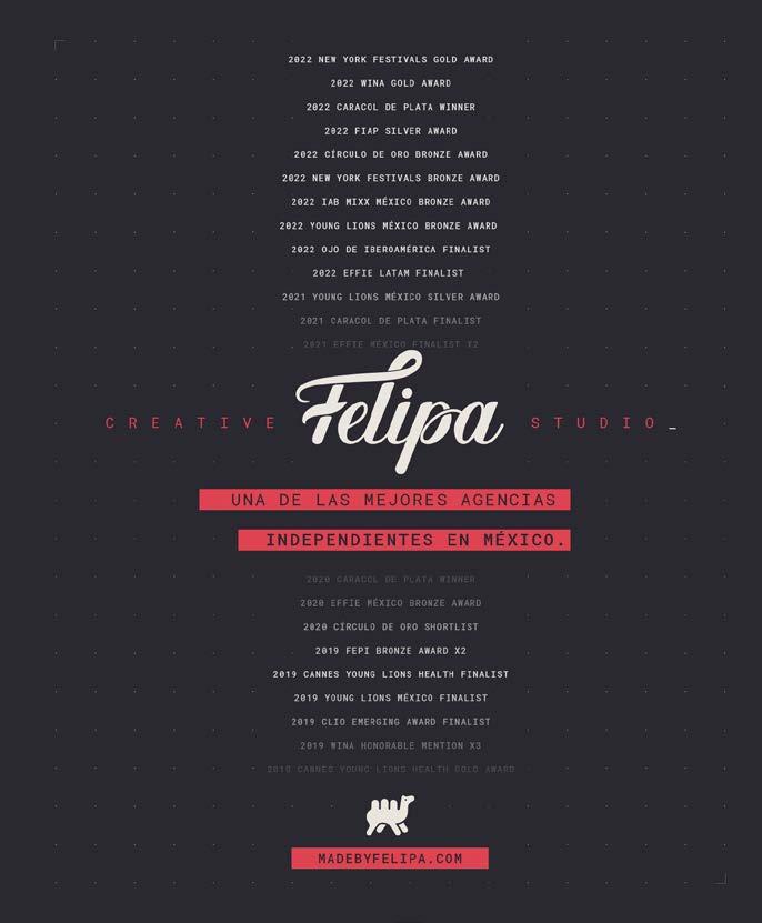 20 GRAND SLAM – EL RANKING DE IBEROAMÉRICA GANADORES DEL AÑO Alma se consagró como la agencia del año, We Believers como la Agencia Independiente del Año; DDB, la Red del Año, AB InBev se llevó la más alta distinción como Anunciante del Año y Oriental Films se convirtió en la Productora del Año en FIAP 2022. WE BELIEVERS USA 01 ALMA DDB USA 02 AFRICA DDB SÃO PAULO - BRASIL 03 DE LA CRUZ OGILVY- PUERTO RICO 04 OGILVY HONDURAS HONDURAS 05 LLYC ESPAÑA 06 DDB MÉXICO MÉXICO 07 VMLY&R, SÃO PAULO BRASIL 08 DAVID MADRID ESPAÑA ALMAPBBDO 10 BRASIL 09