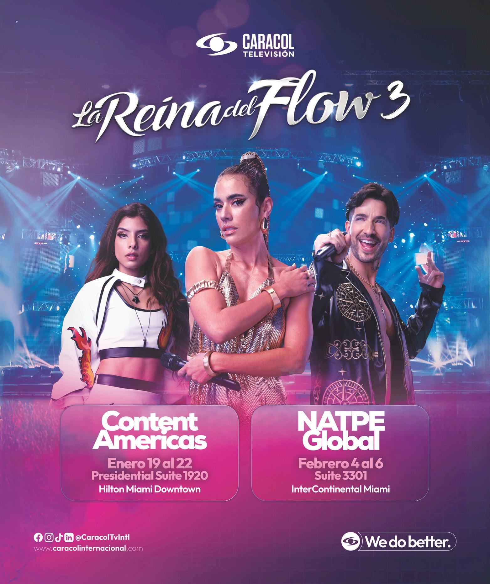 SPTestaráenContentAmericasconvariostítulosdeficcióncomo Señoras mal, inspirada en la producción de 2010 Niñas mal, y contenidos de no ficción como Piensa rápido, un dinámico game show conducido por Adrián Uribe “Esperamos con entusiasmo reunirnosconloscompradoresymostrarlesunaampliaselección denuestrocontenido”,dijoRossiter.