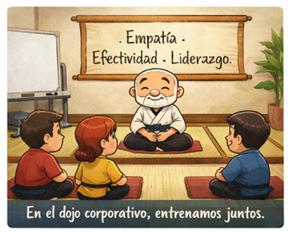 Laoficinanoessolounlugardetrabajo,es nuestro dojo corporativo: un espacio donde cada colaborador practica, aprende y mejora continuamente, guiado por valores comoempatía,efectividadyliderazgo.