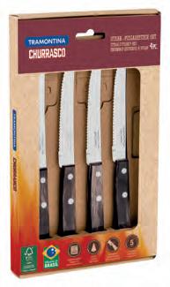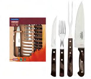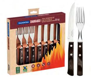 A sokoldalú. Nem számít, hogy szaftos vagy ropogós steakről, vagy pizzáról van szó, a Pizza & Steak evőeszközeinkkel biztonságosan vághatsz. Kiváló minőségű Brazil gyártmány. A villa és a kés rozsdaálló, mosogatógépben is mosható. A markolat anyaga ütésálló, valódi fa.
