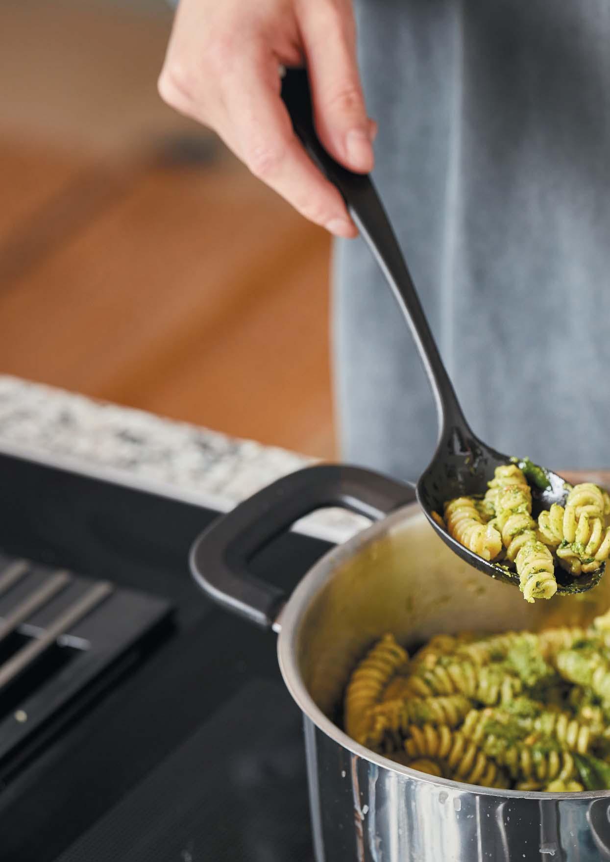 • A tésztakanál biztosítja a tészta jó tapadását, miközben lehetővé teszi a főzővíz leszűrését.