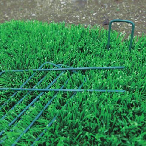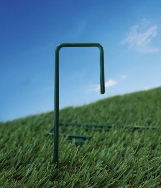 Ahol szükséges biztosítsa a műfű tekercsek széleit a talajhoz, 50 cm-ként rögzítse zöld színű FIXSOL leszúró tüskével.