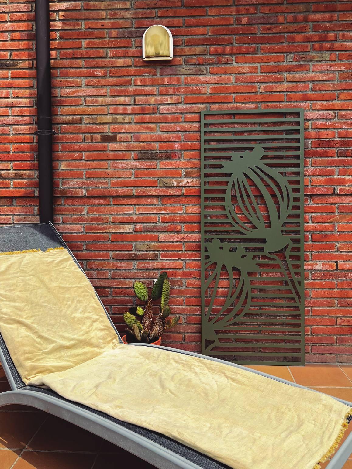HU FÉM PANEL, DEKORATÍV MOTÍVUMOKKAL Vízszintesen teraszelhatárolóként, függőlegesen pedig különböző terek elválasztójaként ajánljuk. Falra rögzítve elegáns növényfuttatóként díszítheti otthonunkat. Különféle színeinek és mintáinak köszönhetően még egyedibbé varázsolja kertjét. Könnyen telepíthető, szállítható, csavarozható es lemosható. Az összeszereléshez szükséges szettet tartalmazz.