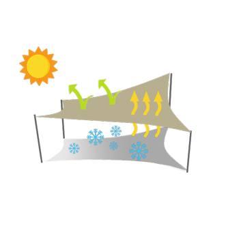 Megtartja az árnyékolt terület hőmérsékletét és véd az UV sugaraktól. Ideális a mérsékelt hőmérsékletű területekre.