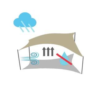 Nem engedi át a vizet, így a szél hatására a vitorla megemelkedhet, amely nehezíti a telepítést.
