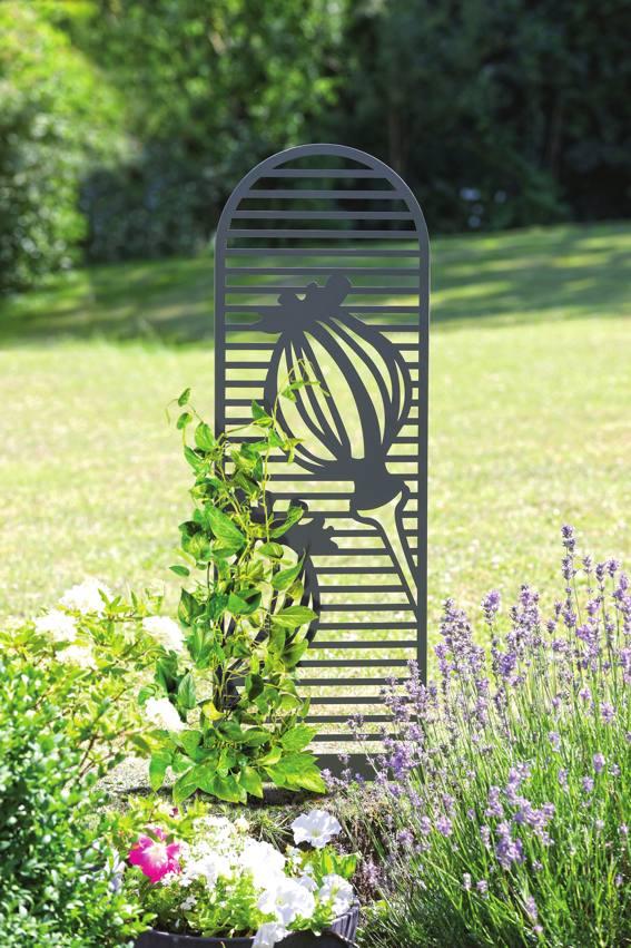 EN Metal panel, with decorative patterns. Metal panel, with decorative patterns. To plantin the ground orto fix onawall. Can be used as a support for climbing plants orto delimitaspace. Fixing kit included.