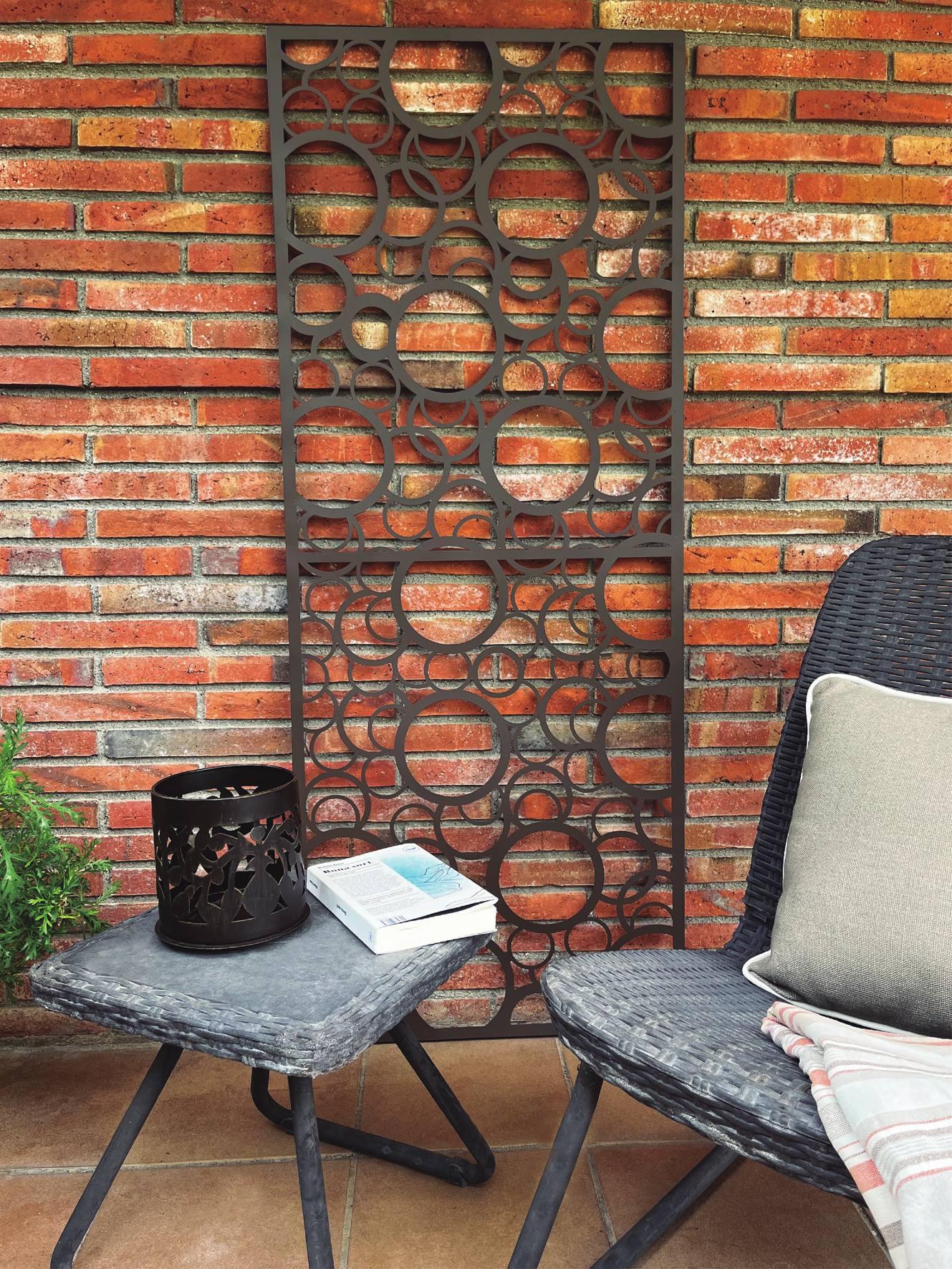 RO Panou metalic, cu modele decorative Panou metalic, cu modele decorative. Pentru amplasare pe sol sau fixare pe perete. Poatefifolosit ca suport pentru plante căţărătoare sau pentru delimitarea spaţiului. Set de fixare inclus.