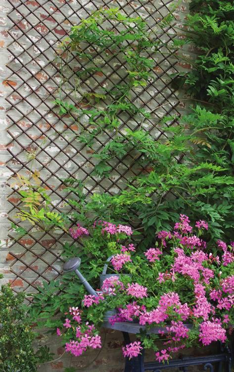 EN A trellisto plant, fullof flower fantasy. For classic and elegant style gardens, combine panel, trellis and border from the "Puppy" collection, for a beautiful harmony.