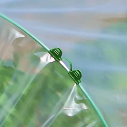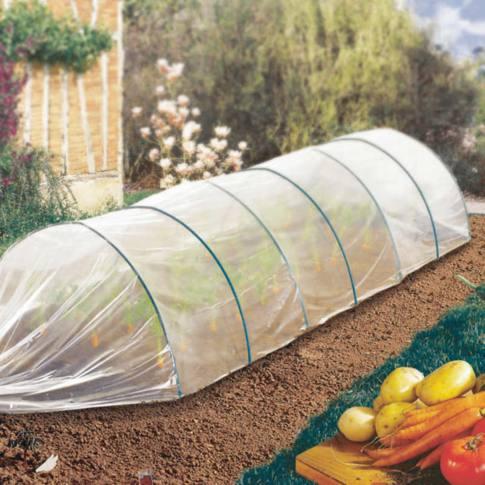 EN Tunnel cloche kit. A ready-made garden foil tunnel set: Cloche film 2mx5m, perforated film 2mx5m, 7xhoops, 2xend pegs and cord.
