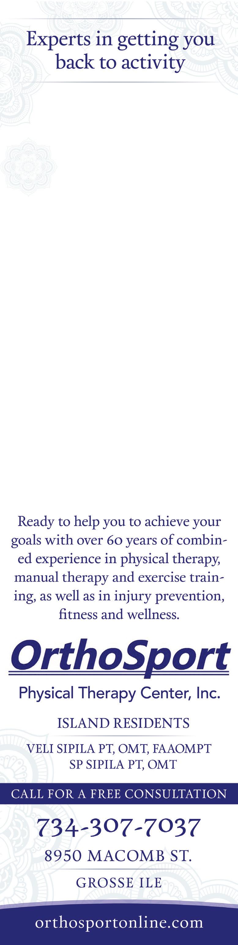 VOLUME 5 ISSUE 2 GODOWNRIVER.COM/GROSSEILE Summer 2023 27 ABOUT TOWN The team at Molnar Funeral Homes, on-site Graphic Design Center team is passionate about creating meaningful and lasting tributes for families 8 EDITOR’S NOTE Island Life 2023 COVER Great Lakes Health and Wellness PHOTOGRAPHY Tracie Seeley EXTRAS A LIST 15 THE NAUTI DOG Dillon Jones and his wife Amee, are ex-cited to bring their business and family home to Grosse Ile 17 SULLY’S BBQ Husband and wife team offers Food that Makes You Feel Good, ADVICE 20 ORTHOSPORT PHYSICAL THERAPY Physical Therapists help active people live better lives 21 IT TAKES A TEAM LifeLong Family Dentistry ,s strength is that they treat their patients like family