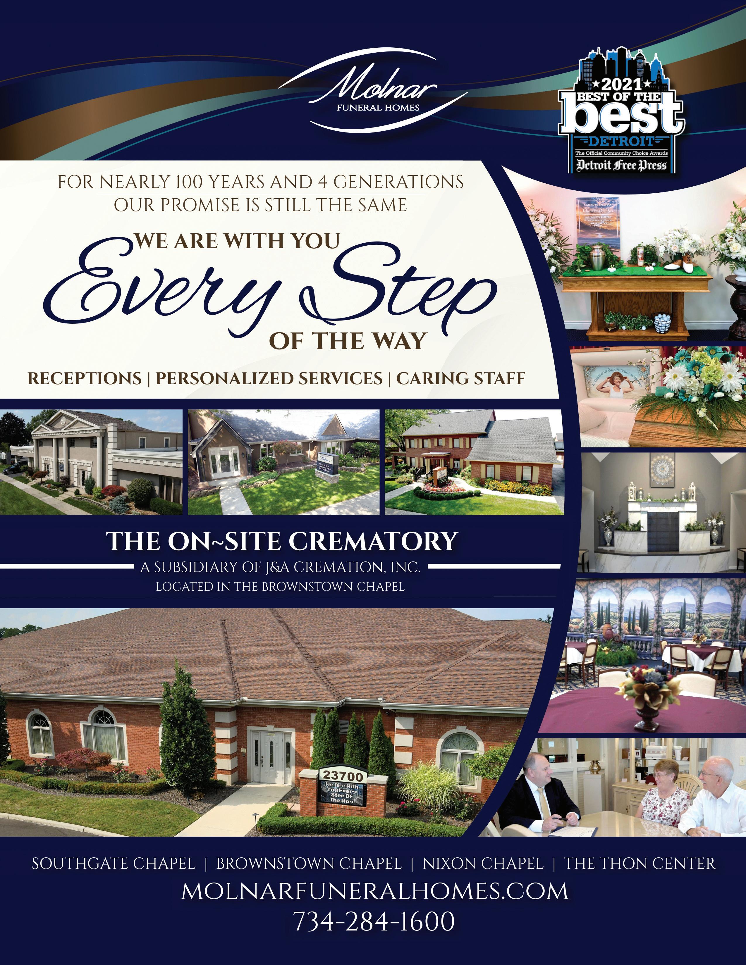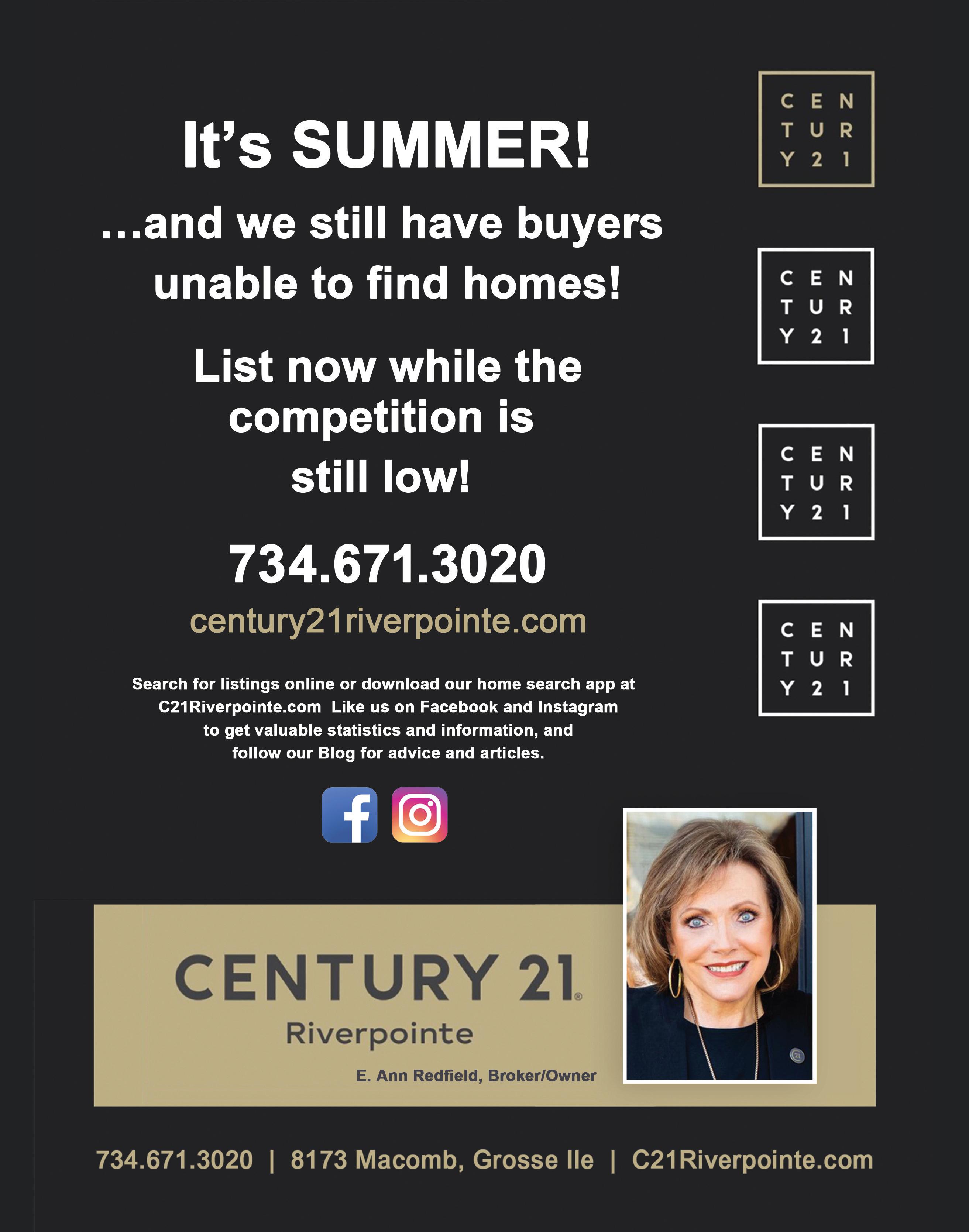 METRO SHORES MEDIA | 966 FORD AVE., WYANDOTTE | 734-308-1388 YOUR ONE STOP SHOP FOR ALL YOUR REAL ESTATE NEEDS • REAL ESTATE PHOTOS • VIRTUAL WALK THROUGHS • LISTING VIDEOS • DRONE PHOTOS AND VIDEOS • HEADSHOTS (ON AND OFF LOCATION) Welcome to Island House Senior Living What we offer: • Senior Living for Six Seniors • 24-7 for Total Care • Supervision and Care for Dementia and Incontinenct • Large and Spacious Home for Privacy • Enclosed Courtyard for Safety • Great Location for Visitation, Activities, Walking CALL FOR A TOUR 734-771-4004 8504 Macomb St., Grosse Ile, MI 48138 info@islandhousegi.com | www.islandhousegi.com NOW OPEN 734.671.6518 • EldercareMI.com • info@EldercareMI.com We provide help with... Personal care services, bathing and grooming, monitoring medicines, meals, running errands and appointments. We work with... • Insurance Companies • Medicaid Waiver Program • Rehabilitation & Physical Therapy Companies • Assisted Living Facilities • Hospice Organizations • Nursing Homes Short Visits up to 24-Hour Care • Emergencies Welcome Do you have a parent or loved one that needs extra care? We can care for your elderly loved one in their own home or provide assistance at their senior facility. Locally owned and operated since 1989