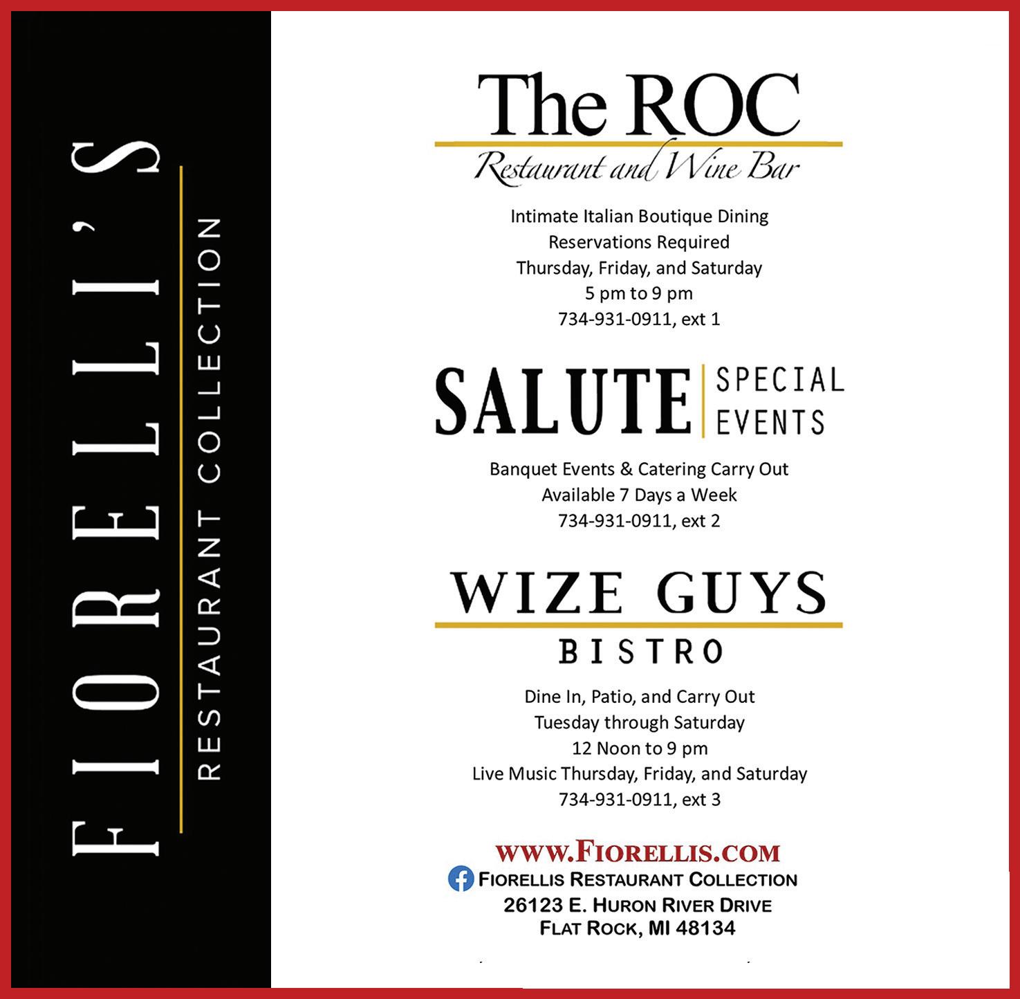Enjoy full menu plus Italian specialties, homemade pizza, and live music this weekend! Wize Guys is open for dine in. carry out, and curbside delivery. Open Tues thru Sat: 12 pm9 pm / 26123 E Huron River Dr, Flat Rock / 734-931-0911 ext 3 / Open Tues thru Sat: 12 pm - 9 pm