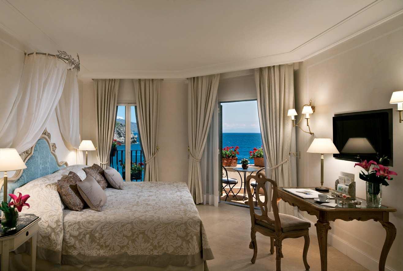 Suiterne og værelserne har bibeholdt deres tidløse charme fra 1950’erne med sirlige detaljer, havvendte balkoner og imposante badeværelser i marmor. At bo på Belmond Villa Sant’Andrea er som at genleve en film af Fellini og som at træde ind i en tidslomme af fortidens glamour og dekadence.