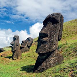 • Påskeøen, Chile: De store stenskulpturer af menneskehoveder er et af verdens store mysterier, og danner et uforglemmeligt, surrealistisk syn i Påskeøens grønne landskaber.