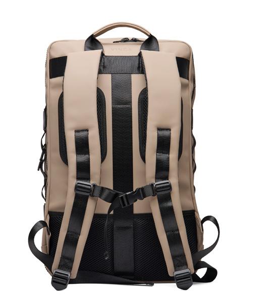 En perfekt følgesvenn for alle dine eventyr. Laget av delvis resirkulert polyester med en stilren PU-finish. For optimal komfort er både skulderstropper og ryggpanel utstyrt med pustende mesh. Ryggsekken er designet for maksimal bekvemmelighet og kan åpnes helt for enkel tilgang. Utstyrt med laptoplomme, to utvendige lommer og en romslig meshseksjon på innsiden, som gjør det enkelt å holde tingene dine organisert. Stroppen på baksiden lar ryggsekken festes til en trillekoffert for sømløs reise. En sidelomme med glidelås gir rask tilgang til hovedrommet, og de to utvendige lommene gir ekstra oppbevaring for mindre gjenstander. Denne ryggsekken er ideell både for daglig pendling og eventyr. 33 L.