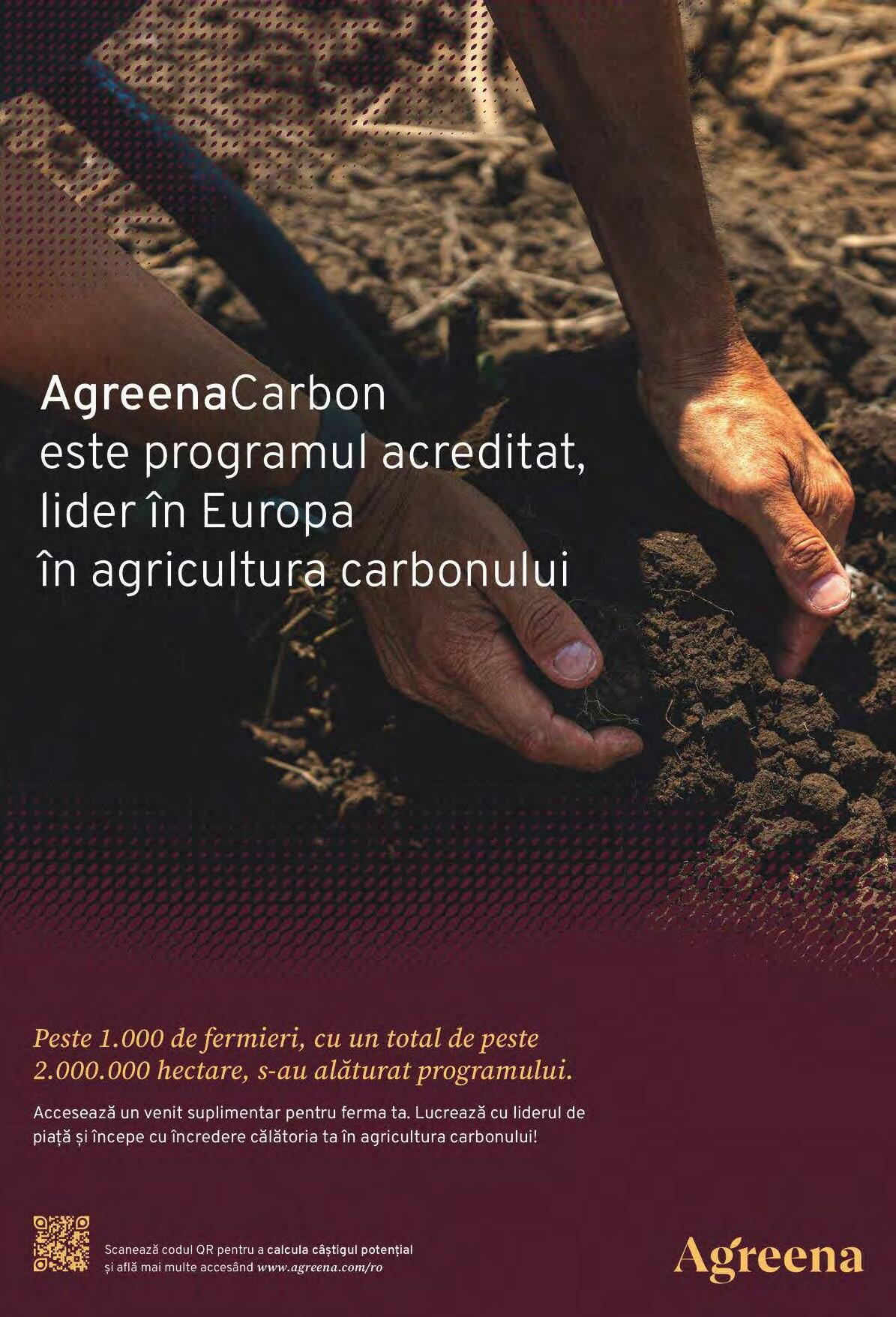 Parteneriatul strategic între IPSO Agricultur\ [i Agreena, semnat anul trecut, se afl\ în plin\ derulare. Colaborarea reprezint\ o ini]iativ\ menit\ s\ ofere un sprijin semnificativ fermierilor în ceea ce prive[te monetizarea practicilor lor agricole prietenoase cu mediul, prin intermediul creditelor (certificatelor) de carbon.