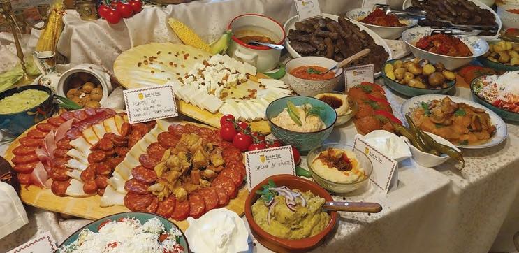 Sarme (sarmale) bånå¡ene, påsulå sleitå (fasole frecatå), mititei la jar, cârna¡i în unturå de porc, platou cu mizilicuri ¿i brânzici tradi¡ionale, salatå de icre de crap, zacuscå de vinete, gombo¿i (gålu¿te) cu cåp¿uni, dar ¿i gula¿ unguresc, salatå bulgåreascå cu ro¿ii de Biled ¿i ple¿cavi¡å sârbeascå.