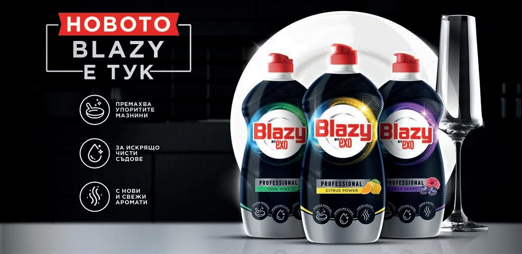 Новото Blazy премахва мазнинитe и придава искряща чистота. Предлага се в три характерни за категорията аромата, които придават свежест на въздуха в процеса на миенe. Маркетингова подкрепа : промоции и рекламни материали в търговската мрежа Логистична информация : опаковка 400 ml / 16 бр. в кашон / 84 бр. кашона на палет Производител : “Фикосота“ ООД Адрес : гр. София, бул. “България” 102 Телефон : +359 8080610