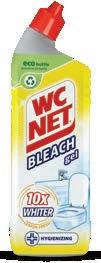 Гел за почистване на тоалетни с добавена белина и сода. Хигиенизира и почиства повърхностите до блясък. Еко бутилка произведена от рециклирана пластмаса.