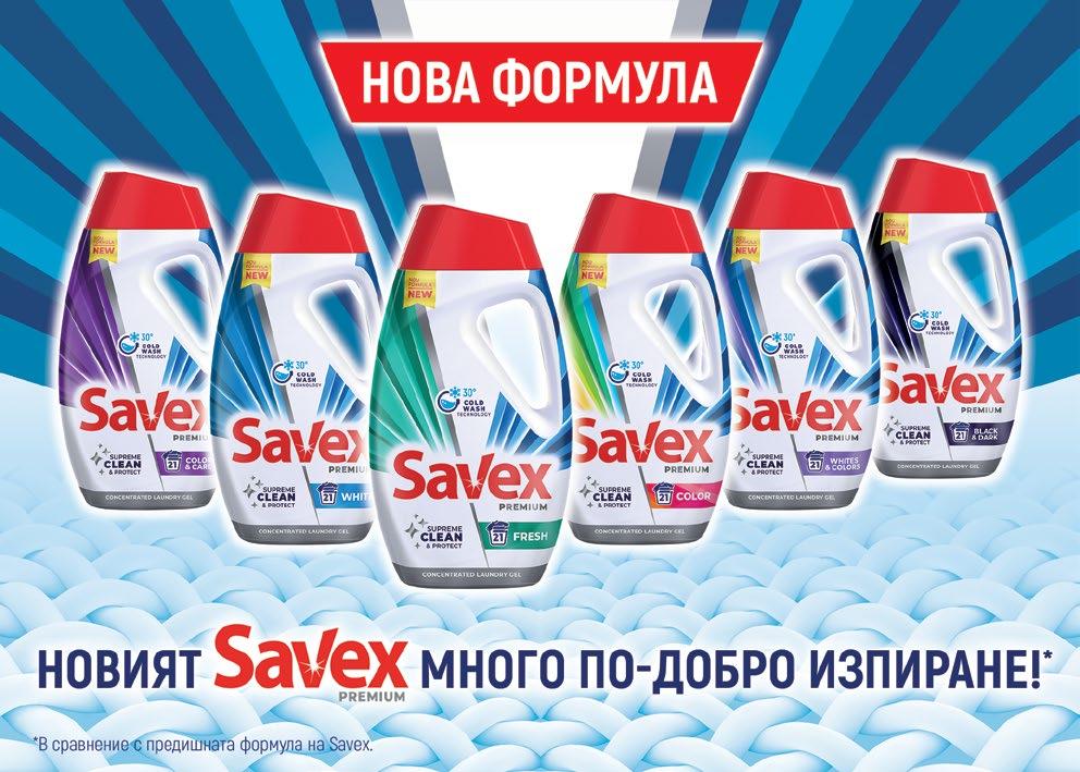 Освен основното си портфолио, Savex представя и два варианта течен перилен препарат за специална грижа за тъканите- Savex Premium Pure & Clean и Savex Premium Odor Defence.