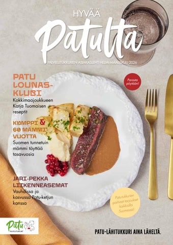 Yhtenäinen Patu-brändi ja sen taustalla olevat Patun toiminnan perusteesit on nostettu entistä vahvemmin esiin julkaisuissa, nettisivuilla ja mainonnassa. − Olemme halunneet kytkeä vies tinnän osaksi asiakaspalvelu amme. Mietimme aina kauteen sopivat tuotteet ja tarjoukset. Perustimme Patu Lounasklubin, jos sa tarjoamme resep tiikkaa asiakkaidem me käyttöön. Myös messut on valjastettu osaksi Patun tapaa kohdata asiakkaita, Jouni Säde kuvailee.