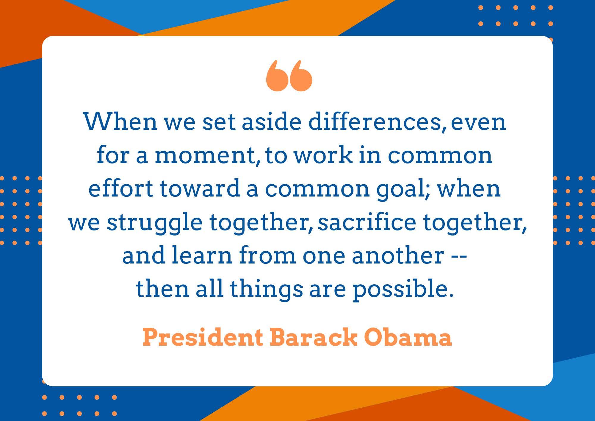 Together, we are stronger. Collaborative teamwork increases service excellence. Respect for the opinions, ideas, and perspectives of others is essential.