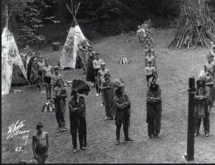 Ernest Thompson Seton (1860-1946) English, emigrated to British North America in 1866. Worked as an artist and naturalist. Founder of the Woodcraft Indian Movement. Published Two Little Savages; Being the Adventures of Two Boys Who Lived as Indians and What They Learned (1906) based on his childhood experience of “playing Indian.” Author of Wild Animals I Have Known (1898) and other animal stories. Seton’s movement also began the Indian Council Ring Tradition, including a structure that versions of can still be found at many Summer Camps.