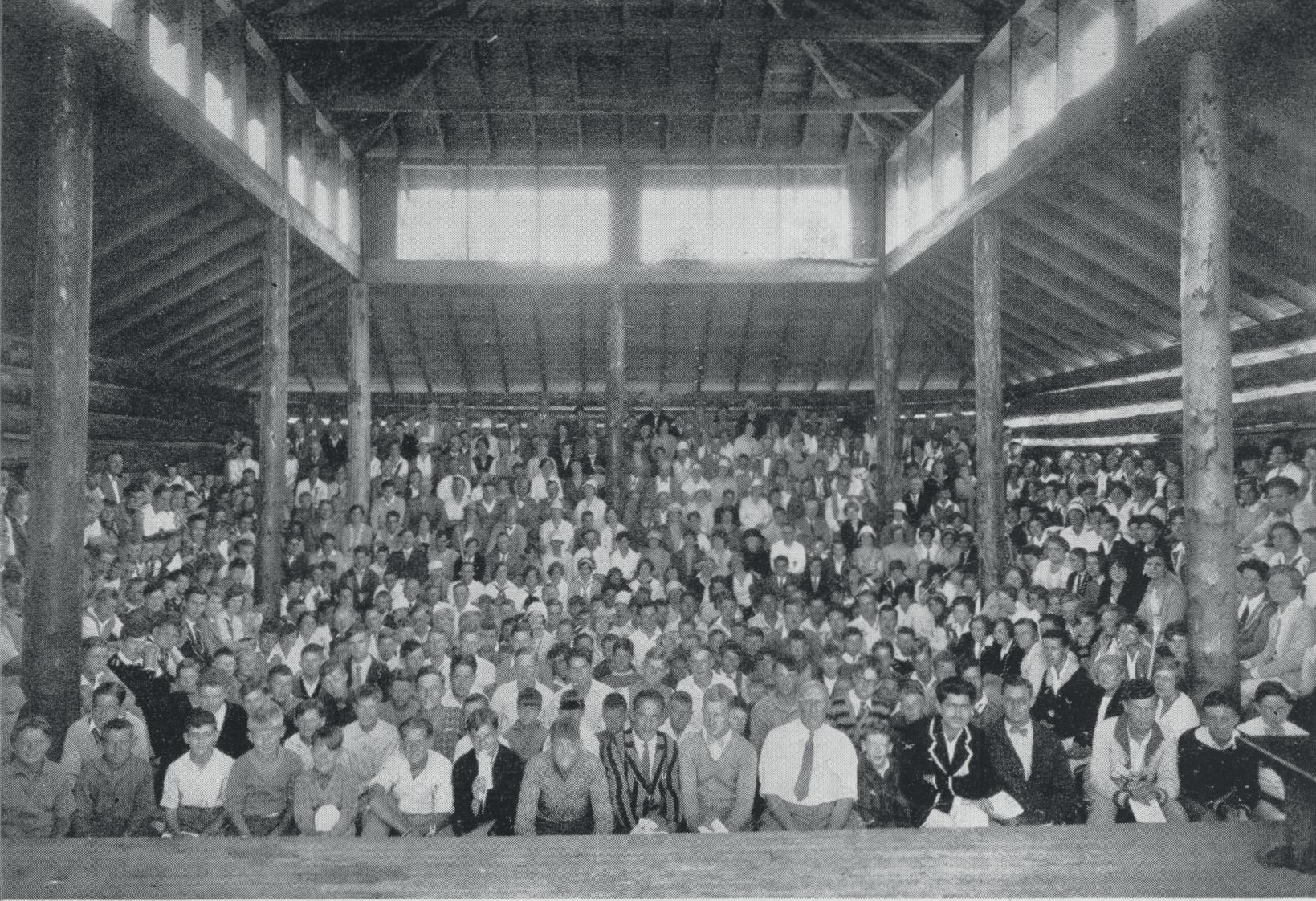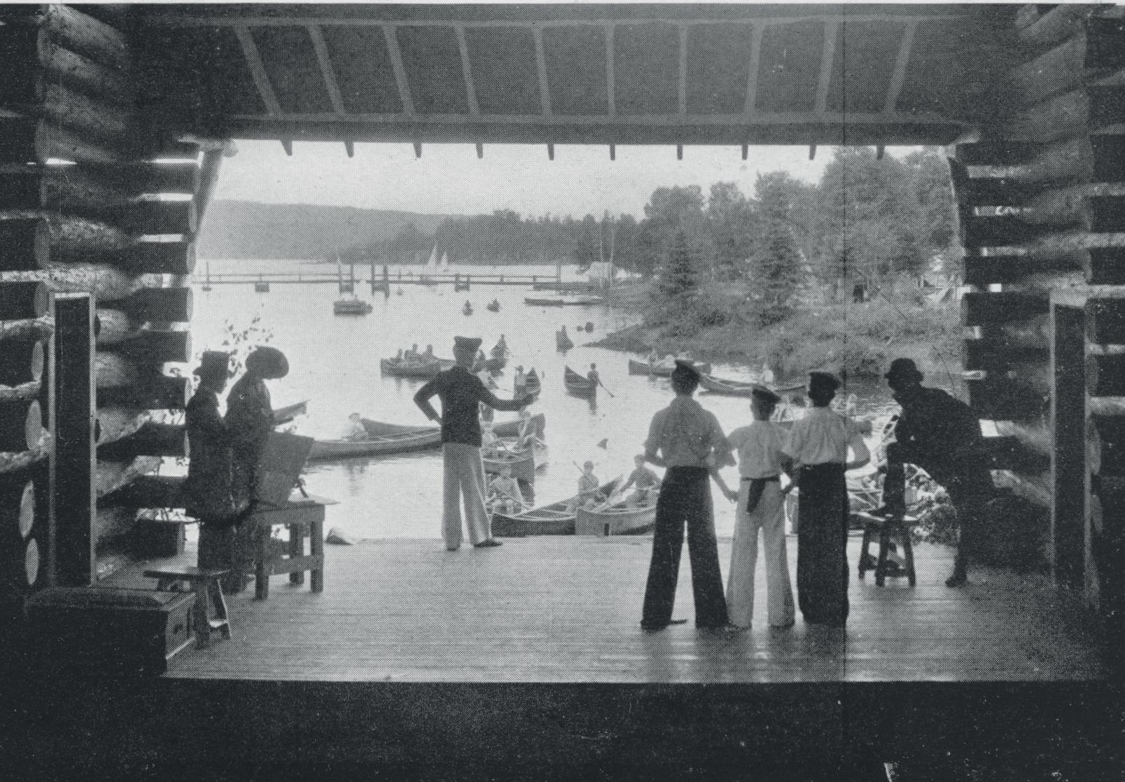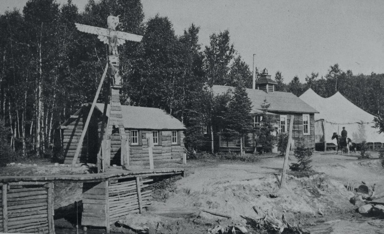 At almost the same critical moment in time (a decade after the publication of Our Forest Children), Ernest Thompson Seton (18601946), an English born Canadian author, artist, and naturalist, founded the Woodcraft Indian Movement (1902). Seton along with the leadership of the Boy Scouts of America (1910) were appropriating the camp as another form of youth training ground. Except they were focused on the education of Settler children. Seton’s ‘forest children’ were White boys whom he introduced to the ways of Native Americans through appropriated chants and rituals around his Indian Council Ring structure in upstate New York.15 These properties in the “wilderness” became the places where the new middle class could escape the perils of the modern city to reclaim this now emptied territory and idealized landscape. As a formalised type, the Woodcraft Summer Camp, and the phenomenon of playing Indian proliferated in Ontario between 1920-1955.16 Not only popular at private, for-profit camps located in the Muskoka, Algonquin, and Temagami regions, catering for well-to-do, upwardly mobile, middle- and upper-class clientele, but also fresh-air camps run by churches, charities, and other non-profit organisations, catering to the poorest sector of Ontario’s working class.17 These camps allowed Settlers to strengthen community while learning a specifically designed set of skills oriented towards forming a bond with the landscape—fundamental to the process of Canadian nation building.