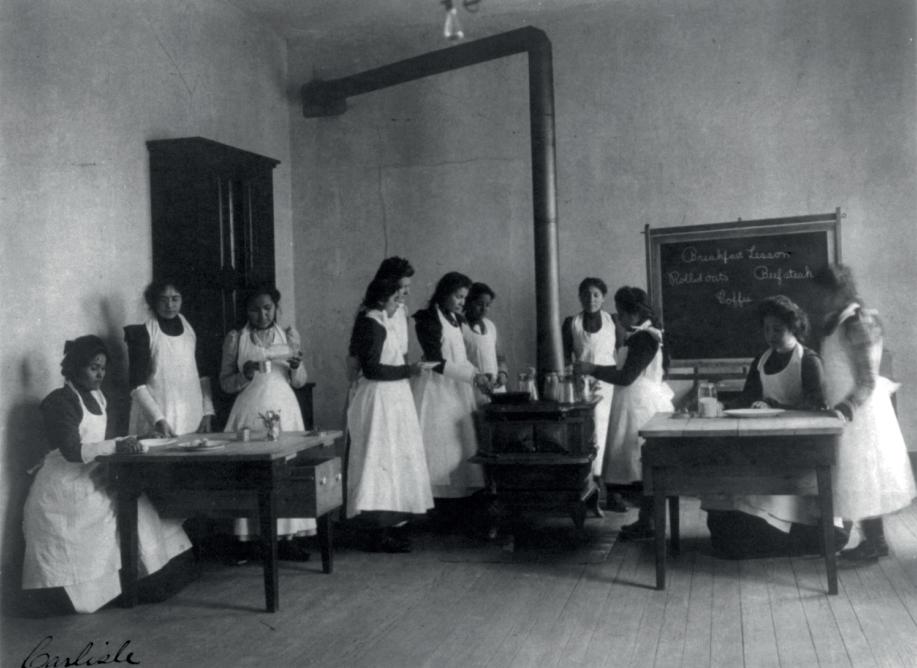 "To provide at the said School teachers and officers qualified to give the pupils religious instruction at proper time; to instruct the male pupils of the said school in gardening, farming, and care of stock, or such other industries as are suitable to their local requirements; to instruct the female pupils in cooking, laundry work, needlework, general houswifery and dairy work, where such dairy work can be carried on; to teach all the pupils in the ordinary branches of an English education; to teach calisthenics, physical drill and fire drill; to teach the effects of alcoholic drinks and narcotics on the human system, and how to live in a healthy manner; to instruct the older advanced pupils in the duties and privileges of British citizenship, explaining to them the fundamental principles of the government of Canada, and training them in such knowledge and appreciation of