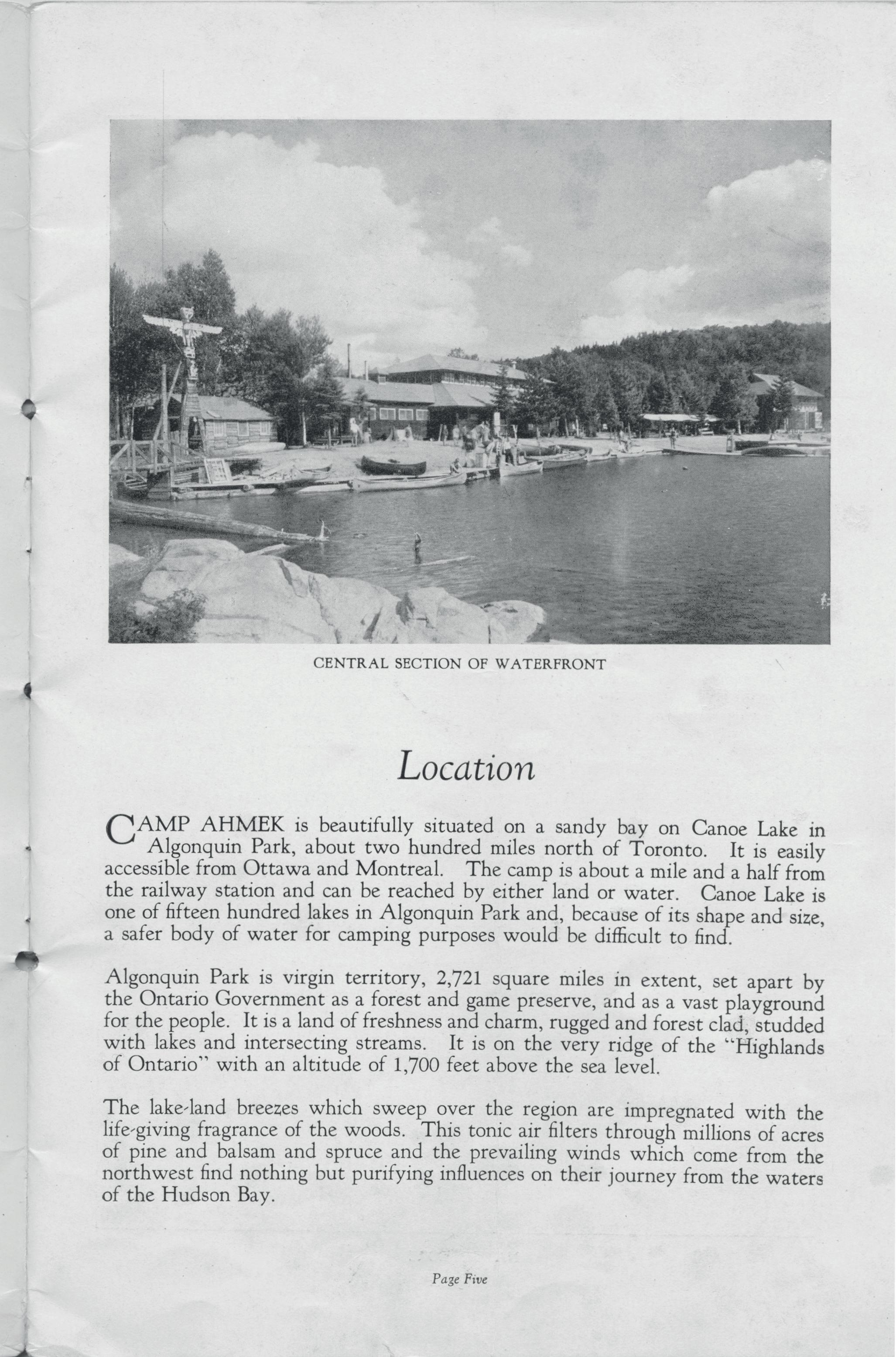 "Canada's backwoods have become a classroom for Canadian youth. With the University of Toronto playing its part, a formal education programme has been launched to train camp directors in skills which ranked high in the historic past but now are almost forgotten; how to get along among the forests and streams of the wilderness." … ""Ahmek" is Indian for "beaver". It adequately symbolized the national aspect of the camp, for to Camp Ahmek came 200 people from all parts of the country.