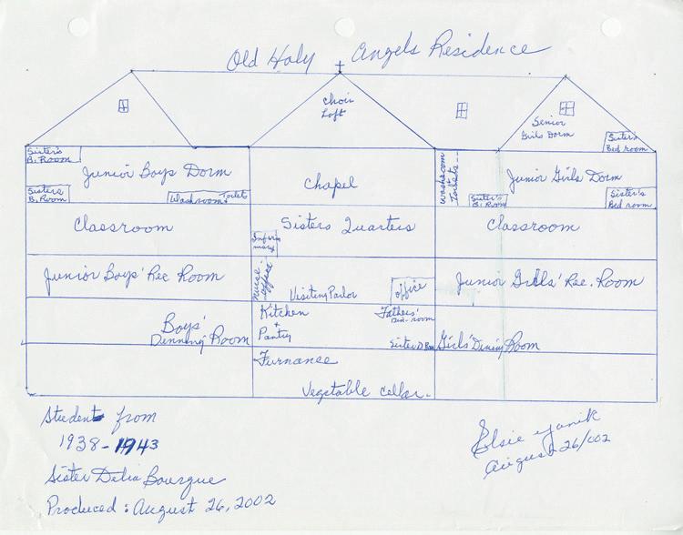 Letter correspondance describing changes and renovations and general upkeep of the schools or "homes" in Spanish, ON. A man named Mr. Phil Phelan helping with these changes and upkeep, talk of more toilets (in 1952 they had only 8 for almost 200 boys). The extensions were to be made with a cement floor, structure of wood and covered with insulated brick, heated from their main system. Also proposed changes to the location of the dining room and parlour, and the need for refinishing (painting, varnishing) these rooms of the "house". They have hay (delivered?) and a garden and potato crop. Lots of attention paid to keeping the buildings in an orderly state and upkept finishes. Also in permanent, planned structures echoing the design and materials of the existing building, no need for temporary structures of wood. Plan of current and proposed addition hand drafted in coloured crayon? (p. 10) Emphasis on building in solid, permanent materials and in a style which conforms in colour, material, and style to the rest of the building.