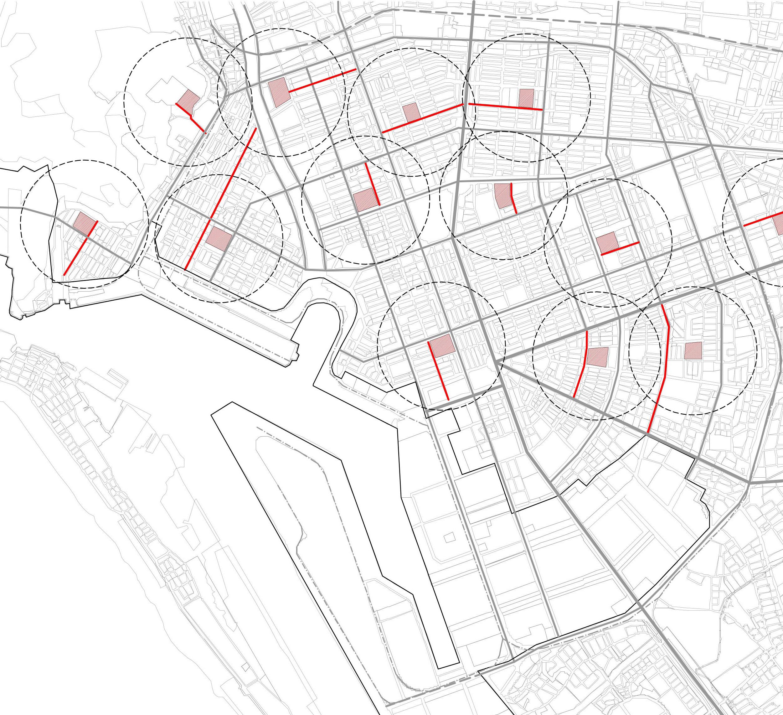 Before I further argue the relationship between education and the city in Kaohsiung, it is of paramount importance to set out an operative framework in the project driven by educational nodes in respective of their multiple scales. This notion originated from the City Improvement Plan of downtown Kaohsiung created by the Japanese. The purpose of the plan was only to provide a purely functional area supporting the port with education and sanitary infrastructures. The idea is demonstrated by the primary education nodes in the existing Kaohsiung downtown area on a neighbourhood scale.