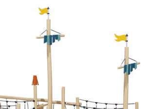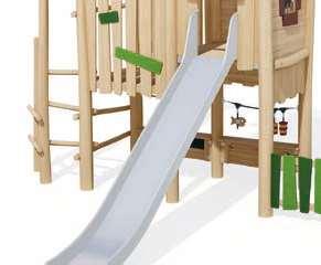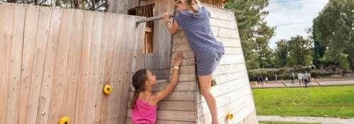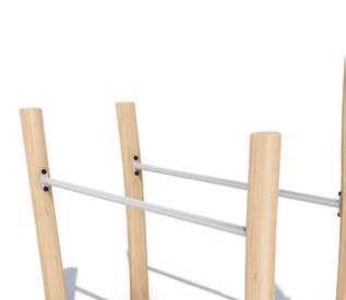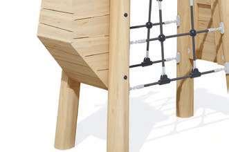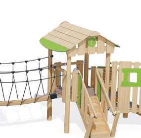 Foratsikreperfektlevetidfordinetrælegeområder,harvivalgtat kombineretokomplementærearterforatskabevoresudstyr:Robinia,et megetmodstandsdygtigttræ,ogDouglasfyr,medbemærkelsesværdige mekaniskeegenskaberoghøjholdbarhed.
