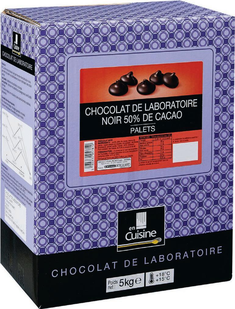 Chocolat noir de couverture en palets 64% de cacao EN CUISINE la boîte de 5 kg Code : 287499