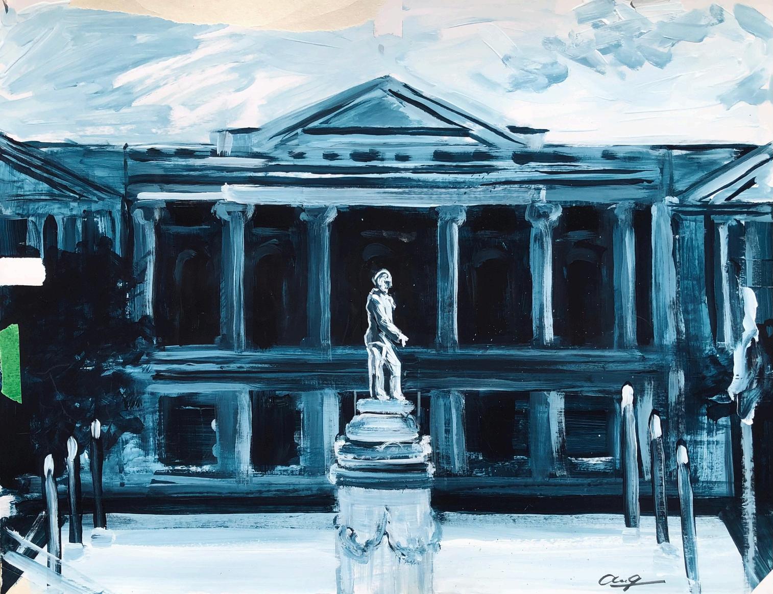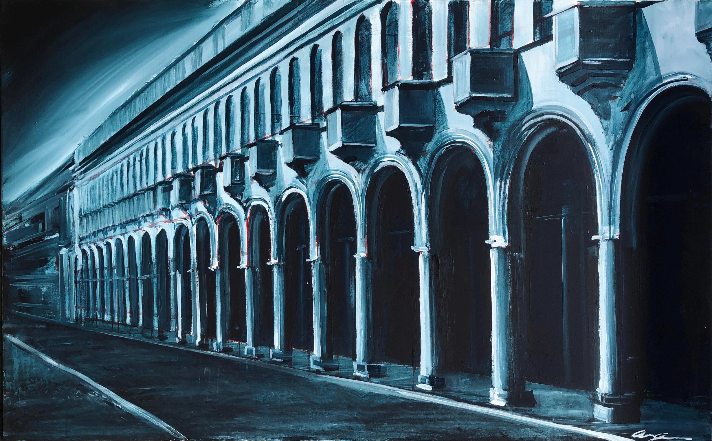 Apasionado por la historia del arte y los grandes maestros de la pintura, encontramos a Andrés dentro de esta faceta temprana, bajo un proceso de autoexploración como artista a través de paisajes, monumentos y sitios, que encuentra al caminar por las calles de San Salvador.