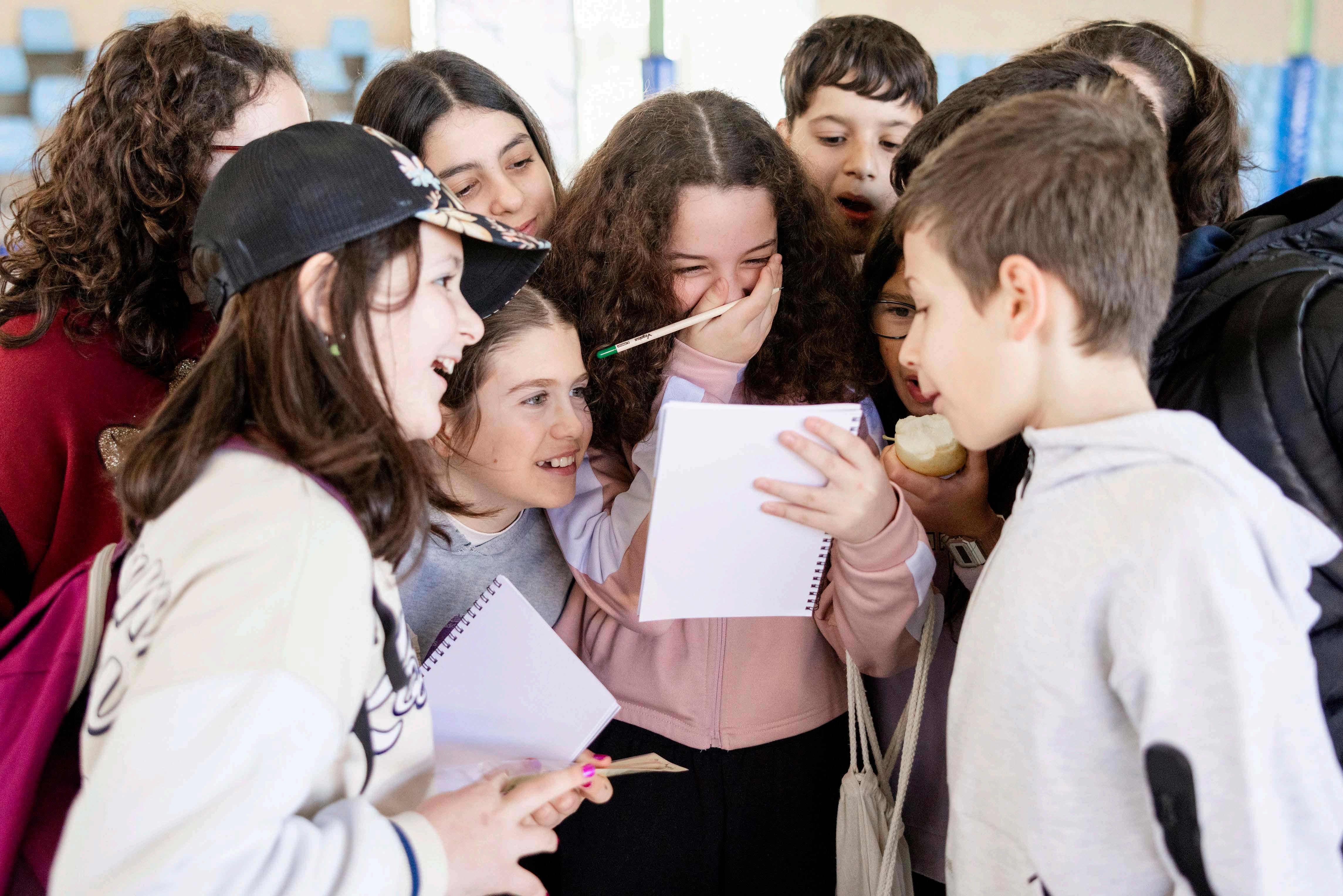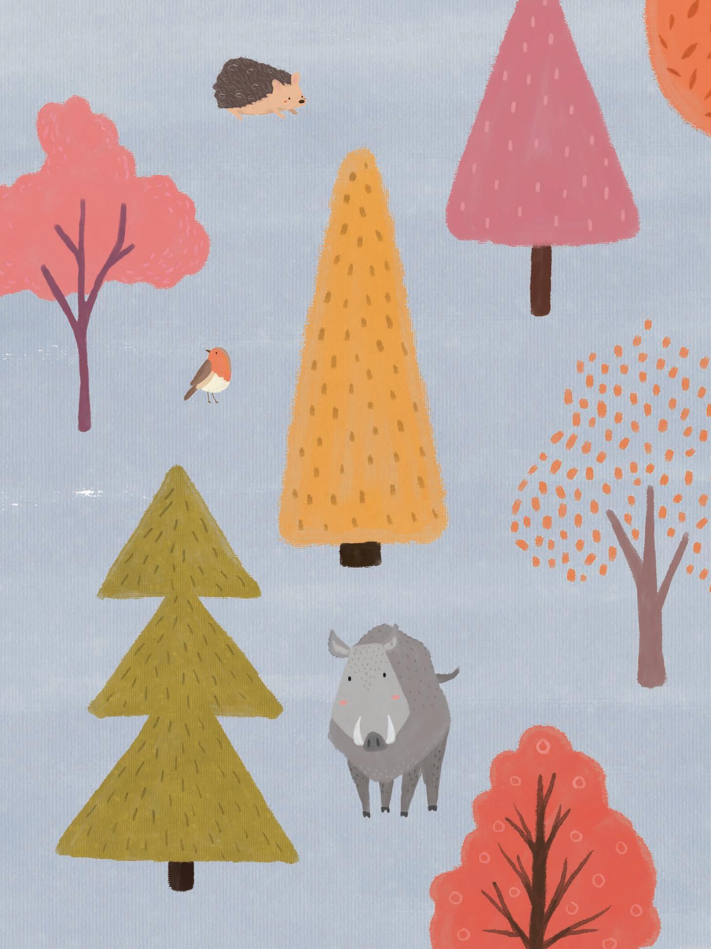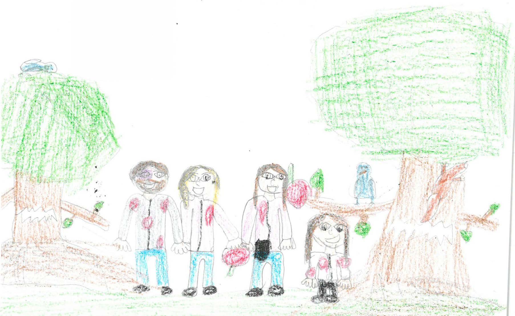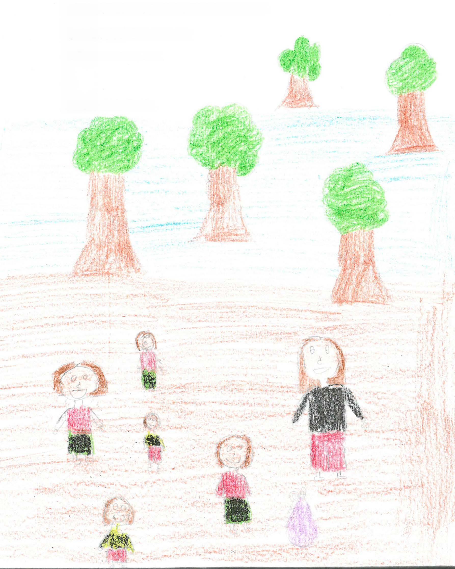 Arrastráronse uns detrás dos outros a través da terra e das raíces, ata que saíron nunha fraga igualiña a súa, a non ser nunha cousiña: as árbores movíanse e podian falar! Os rapaces, cheos de curiosidade, fixéronlles moitísimas preguntas e crearon unha grande amizade.