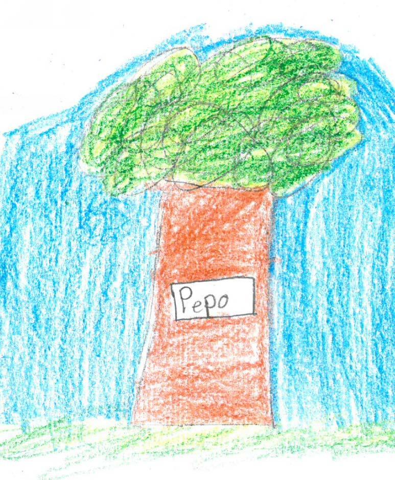 Pero o neno vivía moi lonxe da tenda de árbores. E os seus pais no tiñan coche. Ao neno ocorréuselle ir na bici pero volveria pola noite. Os seus pais dixéronlle que ia ter que ir polo monte, pero iso a Pepiño lle daba igual. Cando espertou empezou a chover e non podia ir. Púxose moi triste e o seu pai dixolle que ira el. Vestiu un chuvasqueiro e marchou.