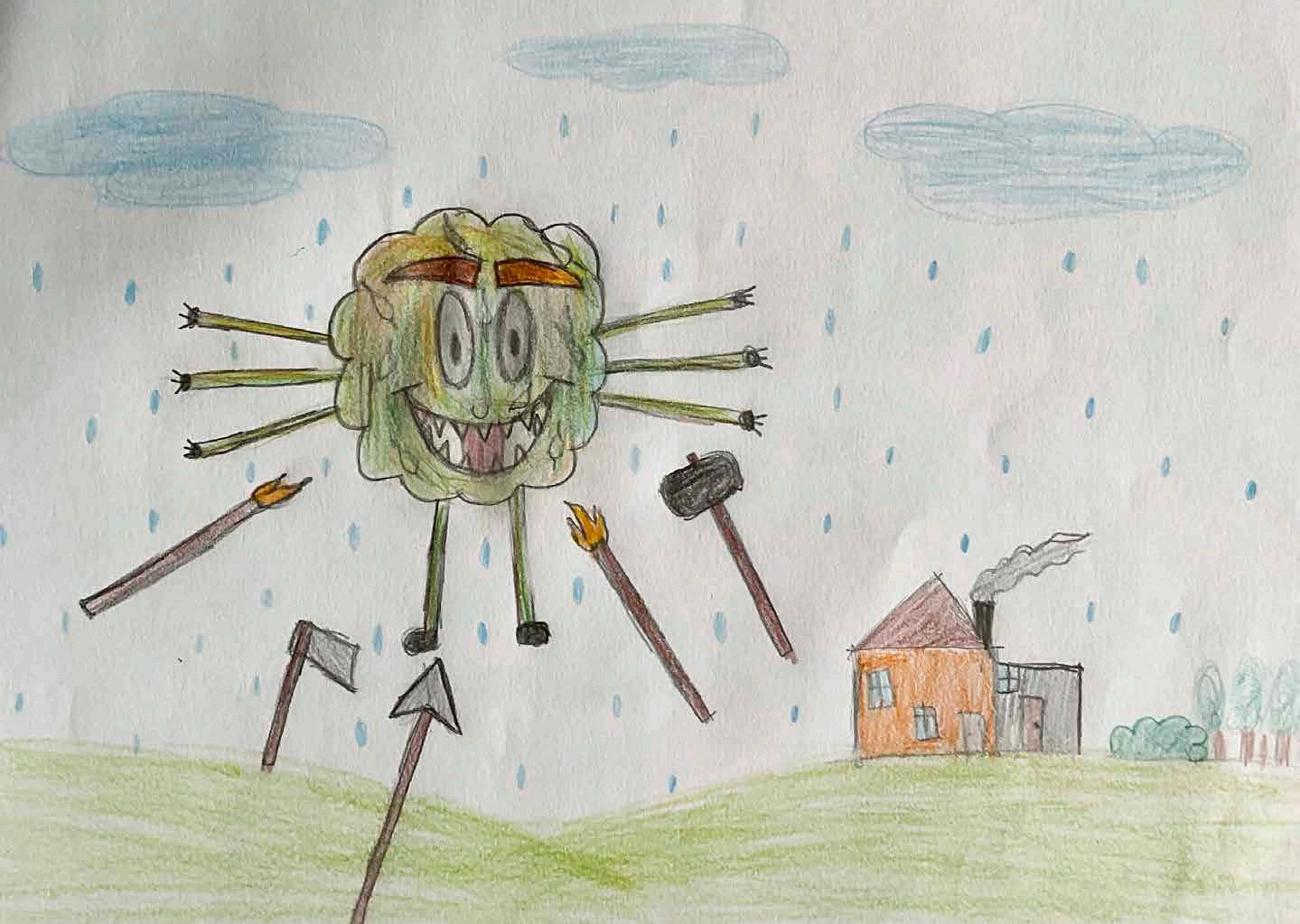 Era un día de choiva un neno chamado Samuel, tiña 12 anos, era moreno, alto, intelixente, forte e valente. El vivía solo nunha aldea de pobres na que había que comer o que atoparas por alí. Era un lugar cheo de natureza rodeado de árbores verdes e flores coloridas. Un día iba el paseando polo monte, e de súpeto escoitou algo ruxir, el non lle fixo caso e seguiu, pero volveu a soar. A Samuel lle estaba entrando unha mala vibra no corpo e comezou a correr directamente cara a aldea para avisar a todos. Reuníronse e quedaron de acordo de que era un monstro, por iso empezaron a coller fachos, ganchos, etc, e foron a por el. De camiño volvéronse a escoitar ruxidos, gritos, pisadas,etc, e todos se agruparon apuntando cos fachos e outros obxectos cara afora. Todos estaban moi atentos porque en calquera momento podía ocorrer algo, e de súpeto un montón de toxo, herba, flores e plantas que estaban agrupadas nunha bola saíu de entre o medio das árbores asustando a todos, pero aínda así non saíron correndo, seguiron firmes e preparados pa atacar. Cada vez a bola acercábase máis e máis e eles ían a empezar a lanzar os obxectos que tiñan nas mans, e un, dous e tres... todo saíu voando apuntando cara o monstro, pero era indestrutible e cada vez íase acercando cada vez máis ata que... logrou meter a todos na súa xigante boca e despois dirixiuse a aldea para comer todas as casas dos cidadáns, e polo camiño ía comendo todo o que atopaba, cousa que miraba cousa que entraba na súa boca. Ao chegar empezou coa aldea, e outro tanto do mesmo, todo pa dentro, as árbores e as marabillosas plantas e flores que había no xardín. Tempo despois o monstro xa estaba farturento, pero decatouse de que aparte do monte onde el vivía e a aldea, quedaba unha parte que non fora, ese sitio era o antigo supermercado e tendas que estaban derrubadas no chan, solo se miraban escombros, escombros e máis escombros. Por suposto tiña que ir aí a seguir enchendo a barriga ata rebentar. Polo camiño foi atopando máis persoas e máis árbores para comer, ata que chegou aí, e el pensaba que solo ía a haber chatarra, pero había un montón de habitantes con armas listas para desfacer esa bola de toxo maligna. Eran tantos os que quedaban que despois de moitos tiros conseguiron que o monstro caera ao chan derrotándoo por fin despois de tantas mortes. Eses habitantes sempre foron con ollo pola vida, e o máis importante é que sobreviviu a maioría de persoas. Esta historia rematou e o vento a levou.