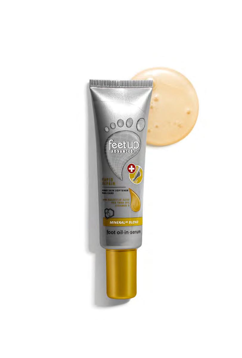 обогатен със салицилова киселина и комплекс Mineral 4E . Хидратиращата му формула е обогатена с ефикасни масла, които попиват бързо, за да направят кожата на стъпалата мека, а ноктите - мигновено ревитализирани.